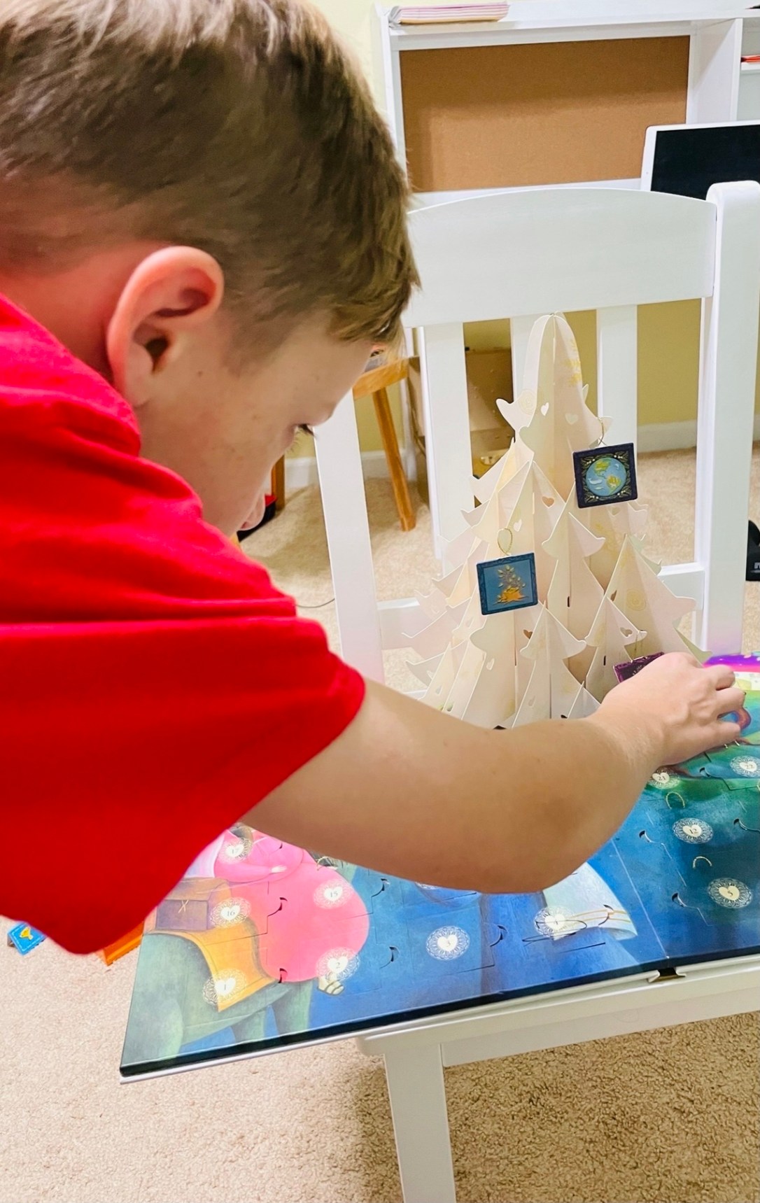Each night they took turns opening one of the little doors, and carefully took out the ornament. Then they pass it around to each other, and everyone looks at it and tries to guess what the story is about. Then whoeverโs turn it is, they hang it delicately on the tree. We read the story, say the scripted prayer, and talk about it.โฅ๏ธ